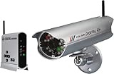erhalten. Die Digitaltechnik sorgt zusätzlich für eine störungsfreie Übertragung. Sie ermöglicht auch den einzigartigen digitalen Zoom, so dass man sofort, ohne weiteres Equipment, das Bild am Empfangsort vergrößert sehen kann. 1/4"-CMOS-Color-Kamera mit 360 TV-LinienObjektiv F=3.6 mm, Lichtempfindlichkeit: 2/0 LuxIntegriertes Mikrofon für Tonübertragung, Audio-Signal wird ausschließlich über den A/V-Ausgang übertragenAutomatischer IR-Scheinwerfer für Nachtbetrieb, Nachtsicht bis 20 mWetterfestes Metallgehäuse (IP 44)4-Kanal-Empfänger mit A/V-Ausgang, Bild digital zoombarDigitale 2,4-GHz-Funkübertragung Abm. (B x H x T) Kamera: 68 x 60 x 160 mm, Empfänger: 80 x 45 x 85 mmLieferumfang:Kamera mit abnehmbarer Antenne, Empfänger mit abnehmb